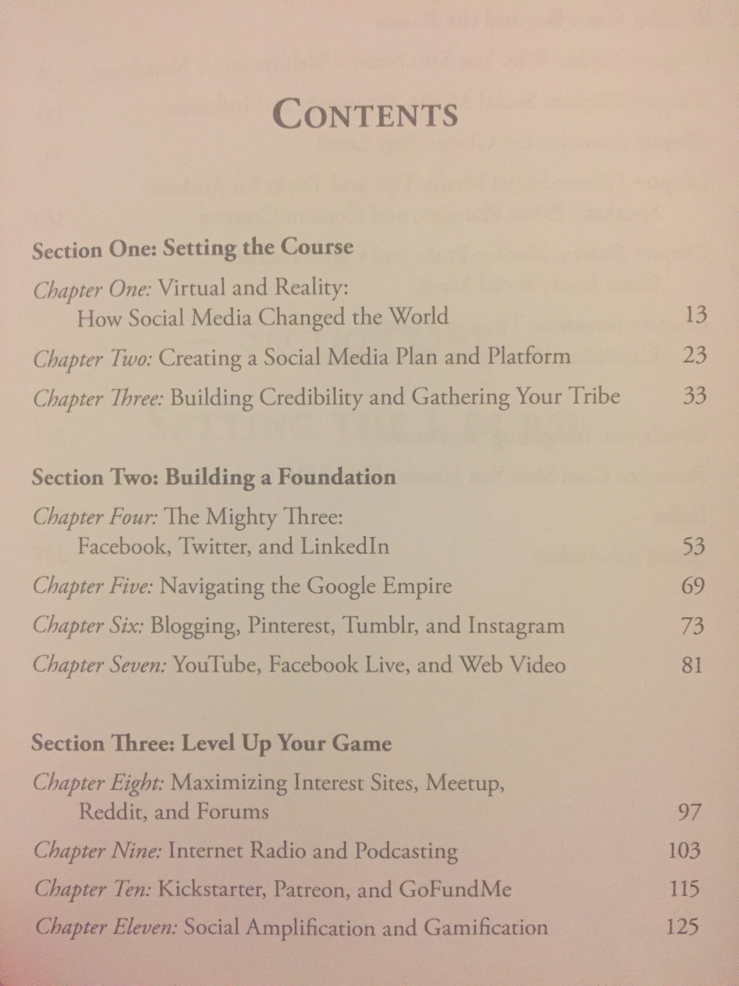 The book is broken up into four sections. The first two sections introduce the reader to the themes and platforms of social media. The third and fourth (the really good parts) sections focus on optimization, navigation, and engagement with the communities that develop on particular platforms, and how they can be utilized by certain entities.