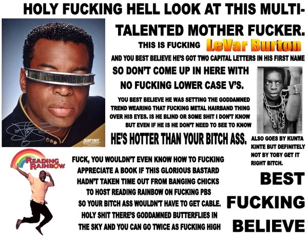 LeVar Burton is black excellence. All in one singular pop-culture era he was our past, present, and future. He was history, literacy, and science fiction all in one breath.