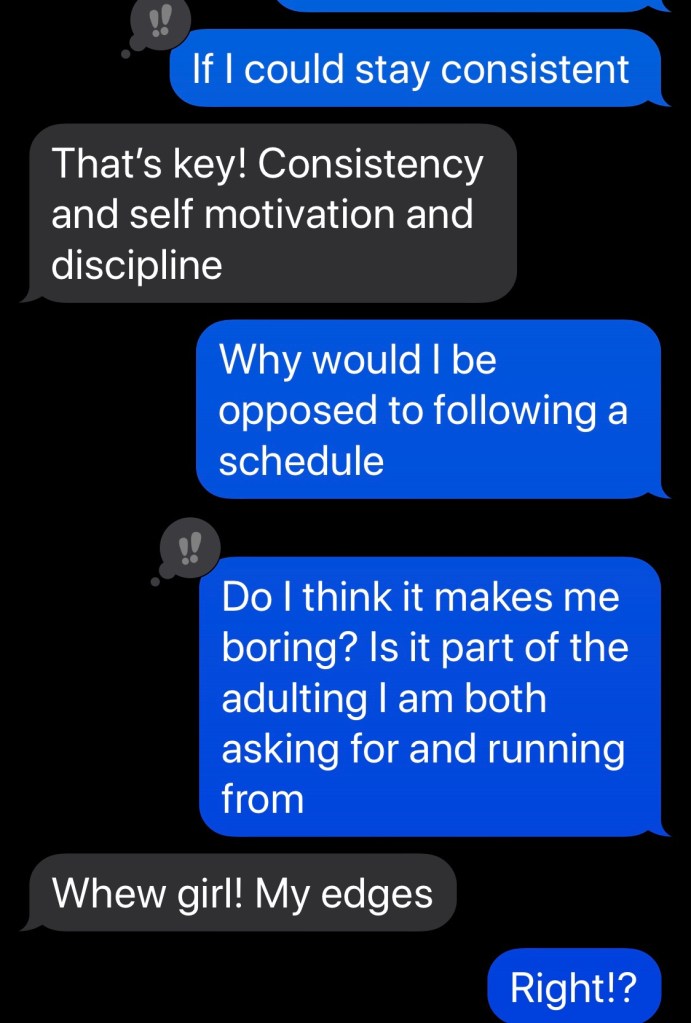 Thankfully motivation is like showering; done often, and thoroughly, and sometimes with friends. Sometimes we pursue things in name but not in practice. I’ve been working to remind myself that discipline and consistent action are key. Its hard now. Harder than it’s been for many of us.
